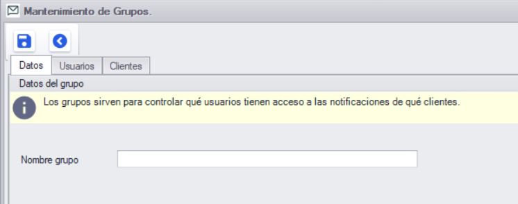 Como en el resto de apartados, si clicamos en el icono Nuevo (arriba a la izquierda), iniciaremos la creación de un nuevo grupo.