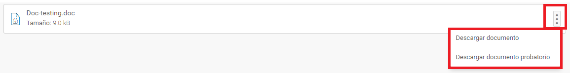 Haz click en el icono de los tres puntos para descargar el archivo certificado o su documento probatorio.