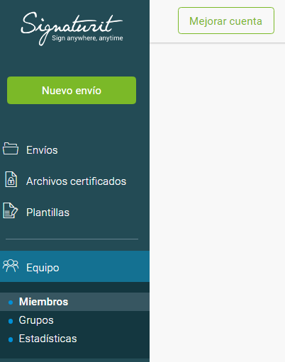 Para reactivar una cuenta y volver a trabajar con ese usuario, ve a la sección Miembros, dentro de la sección Equipo del menú de la izquierda.