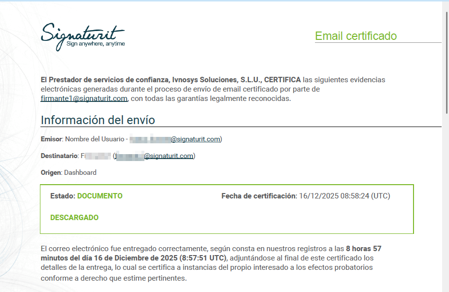 Cuando envías un correo certificado, puedes adjuntar un fichero para que el destinatario lo vea, lo abra o lo descargue.