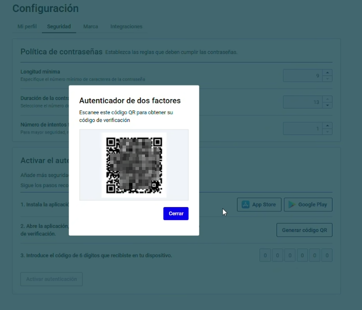 Tras escanear el código QR en la aplicación del Authenticator (p.e Google o Microsoft), éste generará el código de 6 dígitos que podrás introducir en el último paso.
