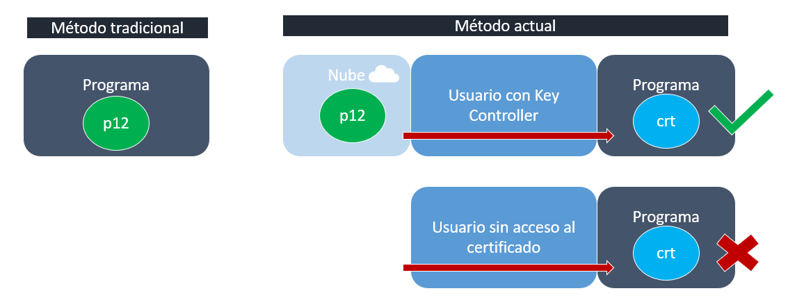 En cambio, si lo subimos al programa que nos pide un certificado, podremos hacer uso de él sin compartir la clave privada del certificado.